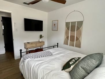 The first guest suite offers a queen size bed with walk-in closet and 50" TV.