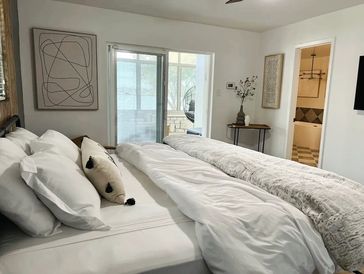 The third guest suite offers two queen size beds, 50" TV and ensuite with a modern walk-in shower.